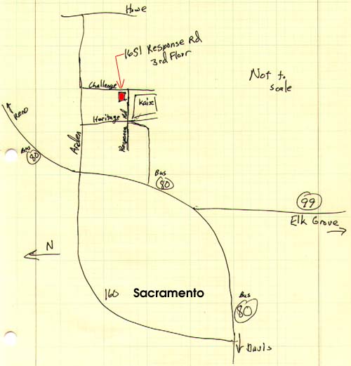 From Davis: Take Business 80. Exit at Arden (East). Turn Right on Challenge. Building is on Corner of Challenge and Response Rd. Kaiser Permanente is on the other side of the street. The meeting is on the third floor.